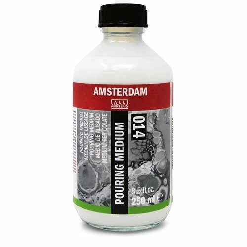 The Amsterdam pouring medium can be used pure or it can be mixed with paint of acrylic ink. Dilute with water. For a thicker consistency an acrylic binder can be used. Stir thoroughly to prevent the formation of air bubbles.