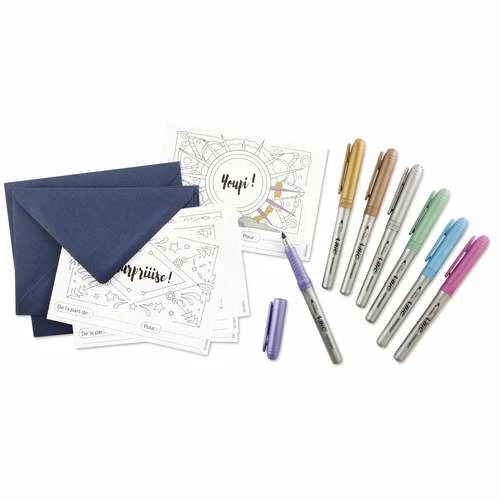 This Bic Intensity Creative Kit contains 7 metallic markers to decorate, label and personalise your objects and gifts in a colourful and sparkling style. It also contains 4 blue envelopes and 6 cards to decorate and personalise.