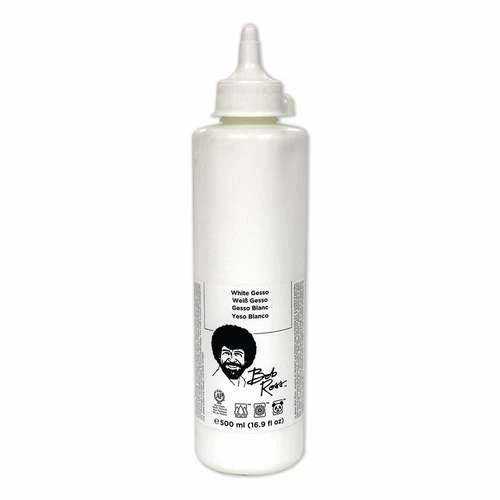 Bob Ross gesso & liquid acrylic primer, water-based, waterproof and smooth when dry, and ideal for preparing canvas, wood, cardboard and other surfaces for work in oils, acrylics, tempera, watercolour, ink or pencil.