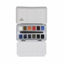 The Caran D’Ache Gouache Studio Sets contain either 7 or 14 pans of gouache plus a 10ml tube of covering white and a size 5 brush.
