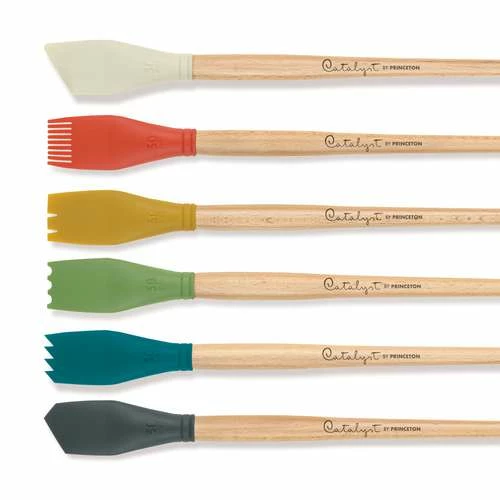 Catalyst Silicone Brush Blades are brush and spatula in one. The flexible silicone blade is attached to a sturdy painted beechwood handle. These Catalyst Silicone BrushBlades are ideal for painting, scraping and modelling techniques.