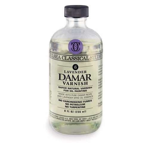 This Chelsea Classical Studio Lavender Dammar Varnish is handmade with natural damar resin dissolved in spear lavender oil essence. A safe, natural solvent that has been used since the Renaissance as an alternative to turpentine and mineral spirits.