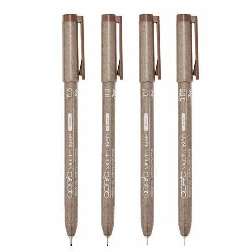 These Copic Multiliner Classic Coloured Pen Sets contain 4 coloured fineliners in line widths 0.05 mm, 0.1, 0.3 & 0.5 mm, perfect for fine drawings and sketches.