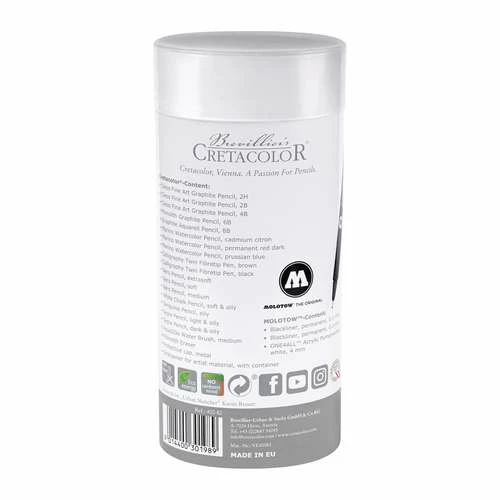Cleverly packed in an oval metal tin, the CRETACOLOR® Urban Sketching Set fits in every pocket and is ideal for travelling.