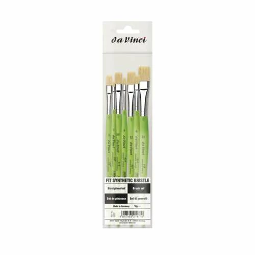 This da Vinci FIT SYNTHETIC BRISTLE Acrylic Brush Set Series 5227 contains 7 versatile and affordable hobby and school painting brushes with strong and elastic synthetic bristles.