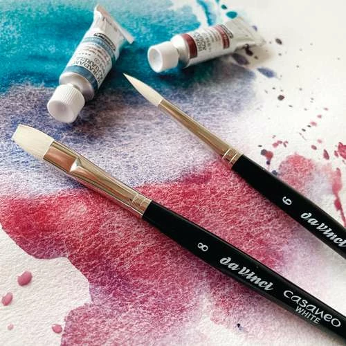- 2 CASANEO WHITE watercolour brushes: size 6 round and size 8 flat