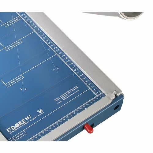 The Dahle 867 Safety Guillotine has been refined for greater precision and comfort. Thanks to its innovative cutting technique you can easily cut materials sensitive to pressure because the automatic clamp can be activated or deactivated as necessary.