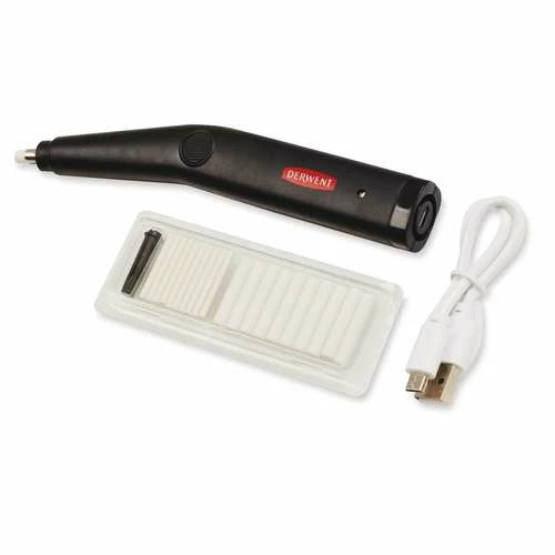 Derwent USB Rechargeable Erasers are suitable for left and right hand use. They erase quickly and precisely, and are non abrasive with a circular motor movement. Extra repalcement erasers are also available, please see item code 60856.