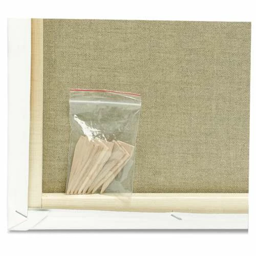 The stretchers on Gerstaecker Excellence Linen Stretched Canvases are natural wood from managed forests in France. The frame is assembled following the traditional methods for large sizes (2 Tenon joints on the sides and notches top and bottom). Hardwood wedges (beech) and support bars (for the larger formats) are included with the canvases. All of these elements combined make for a frame which holds its shape well.