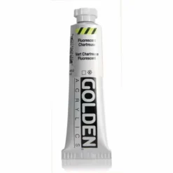 These GOLDEN Acrylics, Fluorescent Colours are intense, brilliant colours made from dyes surrounded by a polymer layer. It is important to realise that fluorescent pigments are NOT lightfast.