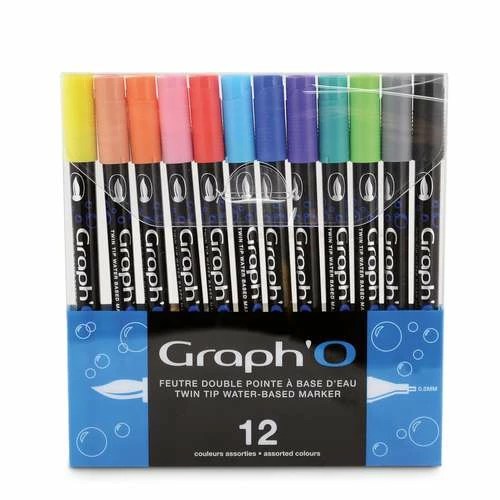 Graph’O Twin Tip Markers are ideal for illustrations, sketches, drawings, watercolour, comics, Manga, scrapbooking, art therapy etc. They are available in the following sets: