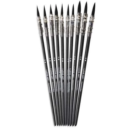Each I Love Art 10 Wash Brush Set contains the following 10 brushes: