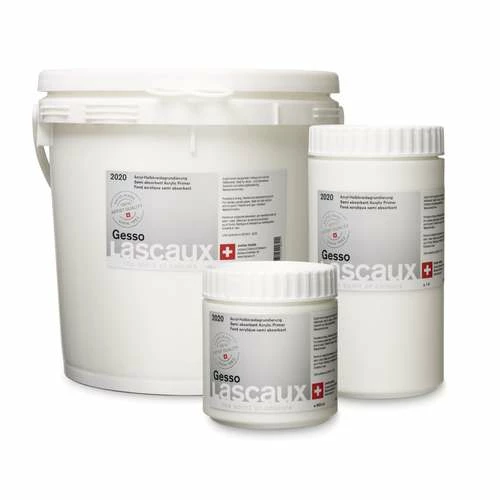 Lascaux Gesso is a pure white acrylic primer that dries hard and elastic. It is suitable for canvas, paper, cardboard, wood and fibreboard for oil, acrylic and tempera.