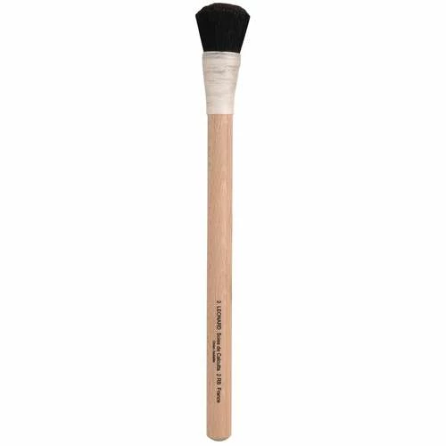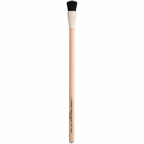 Léonard series 2RB round brushes, with curved black bristles tied together by a string and long, natural wood handles, ideal for polishing gesso when gilding.