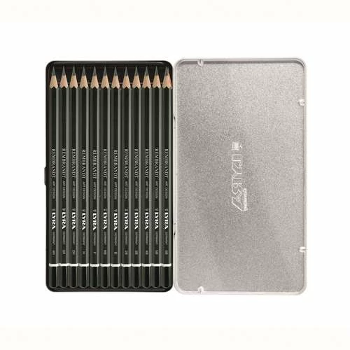 These Lyra Art Design Sets contain 12 assorted graphite pencils presented in a metal box. These pencils are high-quality, wood-cased pencils with high breaking strength and absolutely constant degrees of hardness.