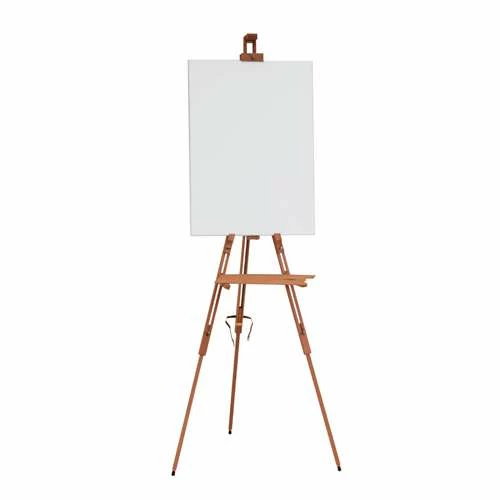 This Mabef M27 Basic field easel with pastel box support is 1.85m high and 72cm wide, with a 2.5cm shelf. It weighs 1.9kg and is intended for use with canvases up to 1.15m and 4kg.