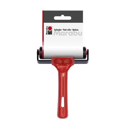 The Marabu Paint Roller has a hard rubber roller and an ergonomic, red handle. It is ideal for thin, flat application of pastes and paints on solid surfaces.