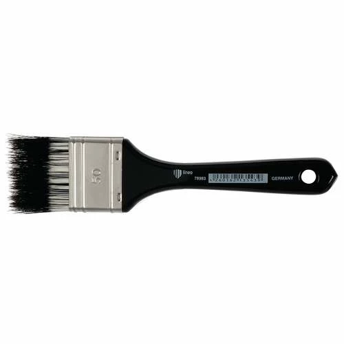 This Martin Thomas Green & Hair Flat Brushes Series 78983 has a mixture of black natural bristles and white, strong synthetic fibres. It has a black lacquered flat handle and a stainless steel ferrule. It measures 50mm wide.