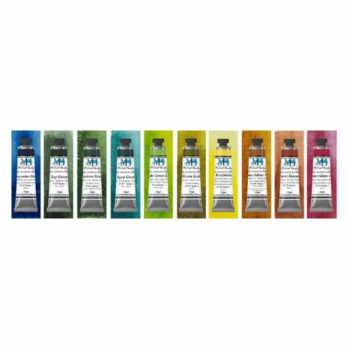 - 67676 – Traditional English landscape set – 10 tubes in: Warm White, Yellow Lake, Burnt Sienna, Yellow Ochre Deep, Moss Green, Forest Green, Hookers Green, Ultramarine Blue, Sky Blue (Phthalo), Lamp Black