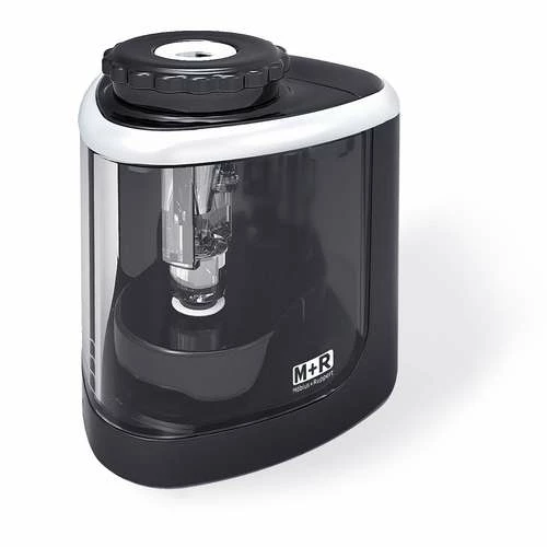 The Möbius & Ruppert Battery Operated Sharpener is made of black transparent plastic. It is ideal for lead and coloured pencils up to 8mm diameter.