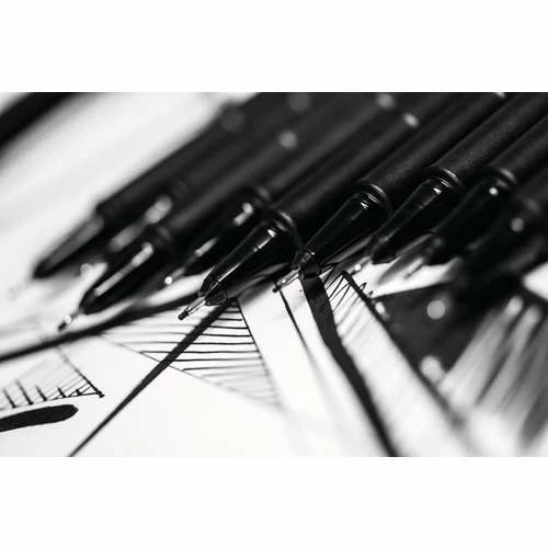 Molotow Basic Blackliner Pens have high quality calibrated tips, and contain permanent, pigment-based black ink, with an alcohol base. The ink in these pens is very fast-drying.
