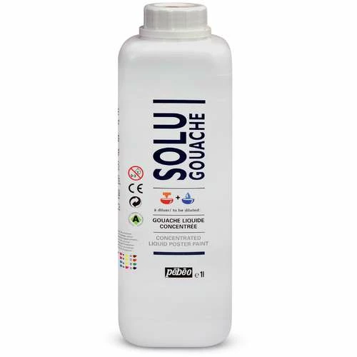 This Pébéo Solugouache dries without becoming brittle. Equipment can be cleaned with soapy water. Pébéo Solugouache is ideal on paper, card, wood, plastic, salt dough etc. It is sold in 1 litre reduced-plastic bottles and therefore makes an important contribution to the environment.