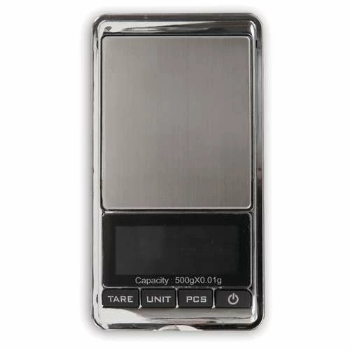 The Precision Mini Scales have tare, auto-off and counting functions.They have a range of 0 – 500g, precision 0.1g and resolution of 0.01g.