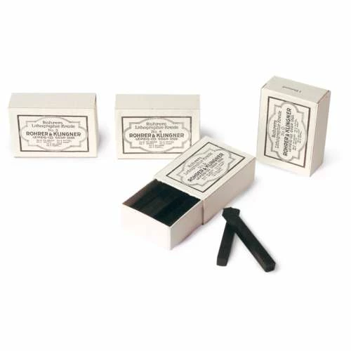 Rohrer & Klingner Lithography Chalk Packs contain 12 chalks in a slide-out box. They are ideal for drawing directly onto the litho printing plate – during etching, the drawings are preserved, only the free areas are attacked.