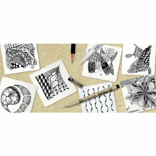They are presented in a pratical plastic case. Zentangle tiles can be optimally combined with Pigma Micron pens. Zentangle focuses on small artworks promoting concentration and relaxation.