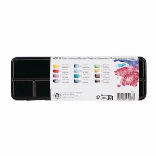 The Schmincke HORADAM® Best of Supergranulation Set contains 12 half pans presented in a smart tin, andt features 12 of the most popular supergranulating colours from the Horadam range.