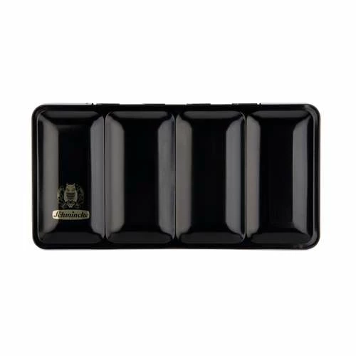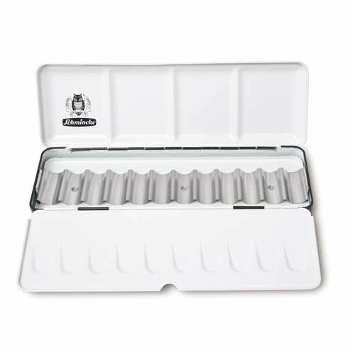 Schmincke Horadam Empty Watercolour Boxes are made of sturdy black metal with white insides.