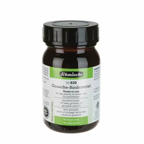 Schmincke ready to use gouache binder, made from gum arabic, dextrin and surfactant rubber, and ideal for rubbing matt, opaque or brilliant gouache colours