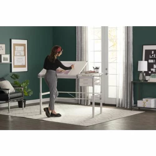 The Graphix II Split-Top Pro-Line Drawing Table consists of two separate work surfaces. The left angle-adjustable surface is ideal for drawing and working, while the right offers space for a laptop or accessories.