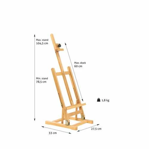 The Table Easel measures 80cm x 34cm x 28cm and weighs 1.6kg. It can hold canvases up to 56cm high.