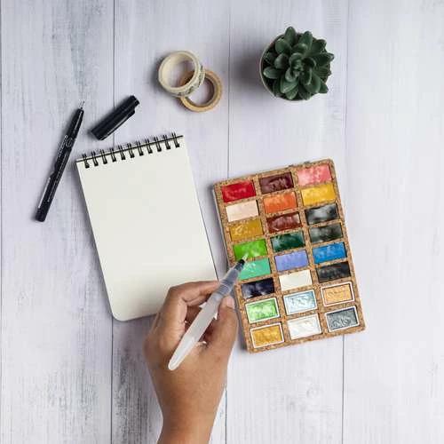 VIVIVA COLORS Watercolour Pans are a simple, comfortable and practical way to watercolour on the go, whether you are an urban sketcher or prefer to set up a classic landscape.