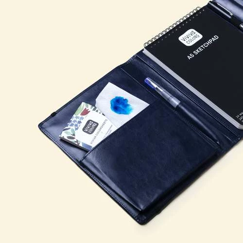These mini paint kits consist of vegan leather cases, a premium ivory sketchpad, one Viviva Original Coloursheets (16 colours), one round tipped reservoir brush and one black marker 0.5mm.