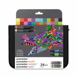 This Winsor & Newton 24 Mixed Marker Set is perfect for studio storage or travelling. It contains 12 graduating tones of ProMarker, 6 BrushMarkers, 3 MetallicMarkers and 3 NeonMarkers.